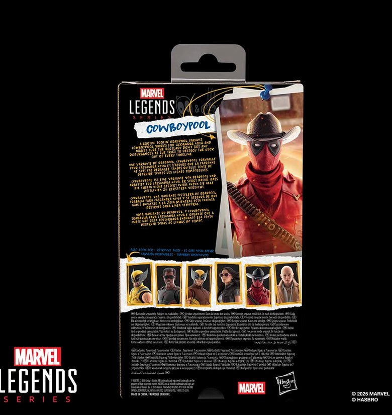 Agrega un toque único y divertido a tu colección con la figura Marvel Legends Series Cowboypool, inspirada en la aparición del personaje en Marvel Studios’ Deadpool & Wolverine. Diseñada para fans y coleccionistas a partir de los 14 años, esta figura destaca por su estilo western, acabados premium y gran nivel de detalle.