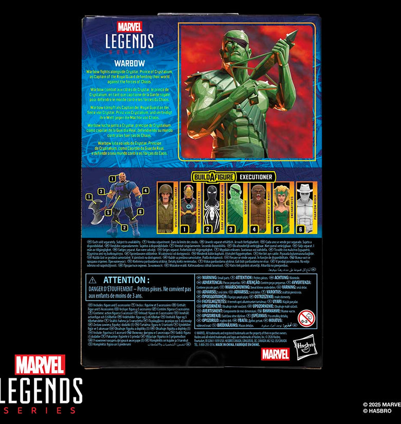 ¡Trae la emoción y la maravilla del Universo Marvel a tu colección con la figura de acción de Warbow de los cómics de Saga of Crystar de la línea Marvel Legends de Hasbro! Esta figura Marvel coleccionable de 15 cm está diseñada para parecerse al personaje de los cómics Saga of Crystar de Marvel. Esta figura de acción Warbow cuenta con diseño premium y cabeza, brazos y piernas completamente articulables. Este set de figura de acción de Marvel viene con 3 accesorios y 2 piezas de figura para armar (Executioner), incluyendo manos alternativas y una ballesta.