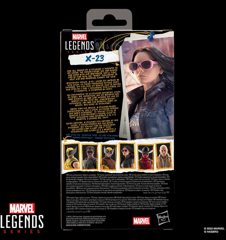 Amplía tu colección del Universo Marvel con la figura Marvel Legends Series X-23, inspirada en la apariencia de Laura en Marvel Studios’ Deadpool & Wolverine. Diseñada para fans y coleccionistas a partir de los 14 años, esta pieza destaca por su acabado premium, alto nivel de detalle y múltiples opciones de exhibición.