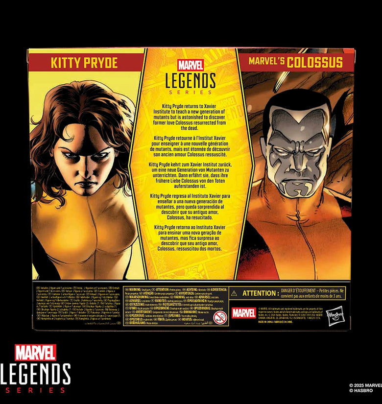 ¡Trae la emoción y la maravilla del Universo Marvel a tu colección con el pack doble de figuras de Kitty Pryde Y Marvel’s Colossus inspiradas en los cómics de X-Men, de la línea Marvel Legends de Hasbro! Estas figuras coleccionables de Marvel tienen una escala de 15 cm y están diseñadas para parecerse a los personajes de los cómics de Astonishing X-Men de Marvel. Estas figuras de Kitty Pryde y Marvel’s Colossus son fácilmente articulables y cuentan con diseño premium y cabezas, brazos y piernas articulables. Este set oficial de Marvel viene con 7 accesorios: 2 manos alternativas, cabeza alternativa y dragón de compañía Lockheed para Kitty Pryde, así como 2 manos alternativas y cabeza furiosa alternativa para Colossus. Las figuras de acción Marvel de Hasbro a escala de 15 cm son ideales para exhibirlas en las colecciones de los fans. Reimagina escenas inspiradas en los cómics en tus estantes con las figuras de acción Marvel Legends y los artículos de colección de Marvel.