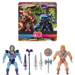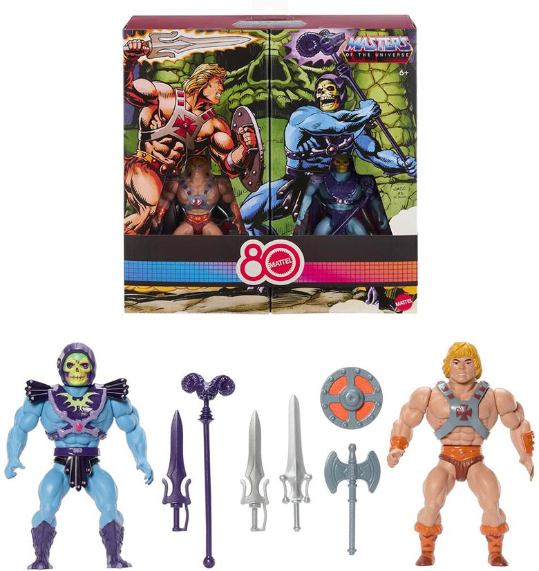 Celebra los 80 años de Mattel con este pack doble de Masters of the Universe, que enfrenta al bien contra el mal con dos figuras retro icónicas: He-Man y Skeletor, ¡ambos con su clásico movimiento de giro y golpe para recrear batallas llenas de acción!