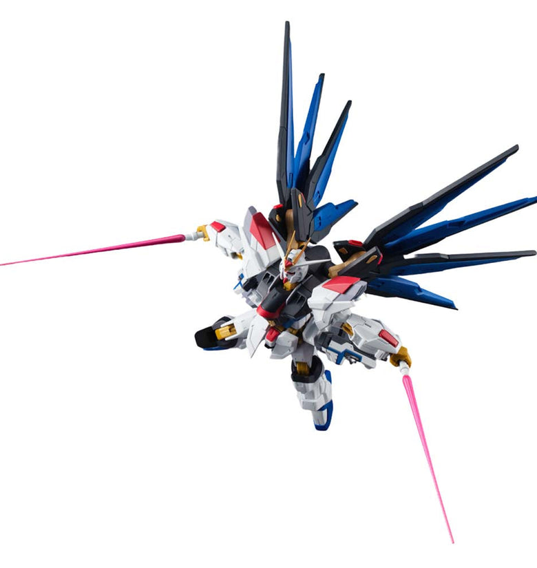 Con una altura aproximada de 15 cm, esta figura articulada permite recrear poses de batalla dinámicas, como el icónico modo High Mat Full Burst. Cada ala, arma y pieza de la armadura ha sido esculpida cuidadosamente para capturar la esencia del Gundam Strike Freedom Type II, combinando precisión mecánica y estilo característico.