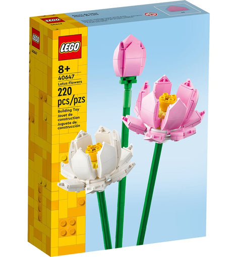 Recrea una maravilla de la naturaleza con el set de construcción LEGO® Flores de Loto (40647). Esta interpretación LEGO de una flor apreciada en todo el mundo incluye 2 lotos abiertos y uno cerrado en delicados tonos de rosa y blanco, con largos tallos verdes para colocarlos en un jarrón. El precioso ramo LEGO es una fantástica idea de regalo de cumpleaños, con motivo de una fecha festiva o solo porque sí y se puede combinar con otros sets LEGO de flores construibles (a la venta por separado).